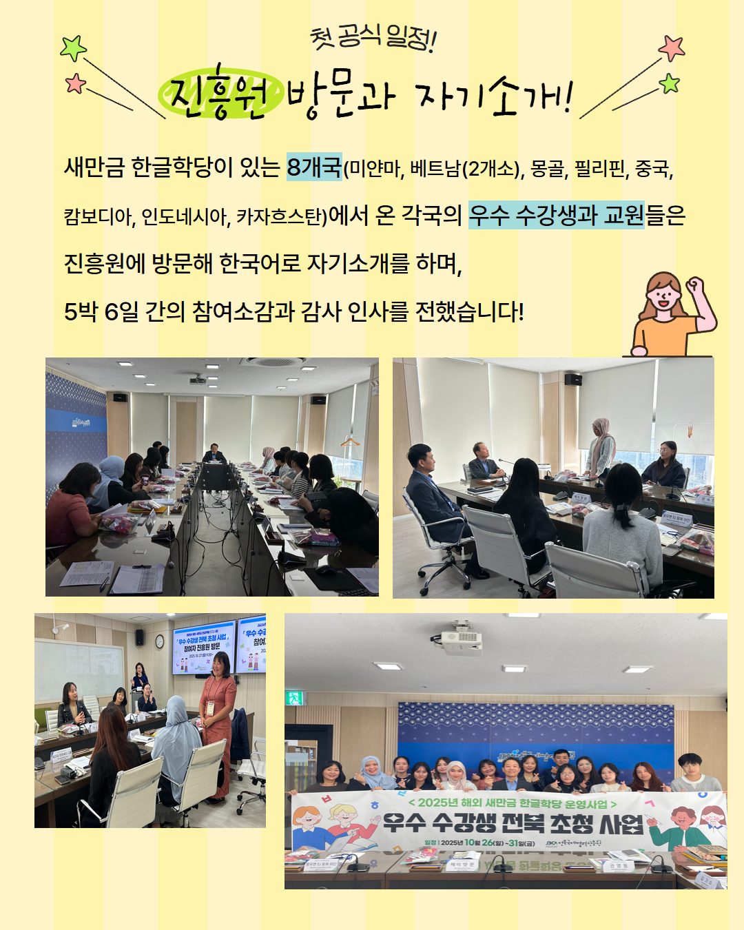 미얀마·베트남·몽골·필리핀·중국·캄보디아·인도네시아·카자흐스탄 총 8개국 참가자들이 전북을 방문했습니다! 🌏💛