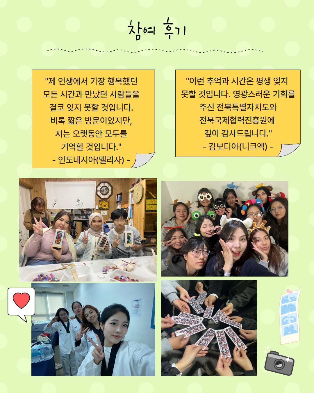 참가자들에게 전북은 '꼭 다시 오고 싶은 곳'이 되었습니다.
